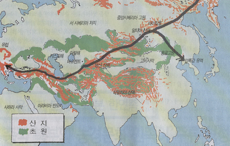 미토콘드리아 DNA분석에 따른 이동로.