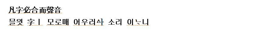 (강신항:1974 역) 무릇 글자란 합해서만 소리를 이루니