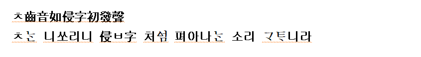 (강신항:1974 역) ㅊ는 잇소리니 ‘침’자의 처음 나는 소리와 같다.