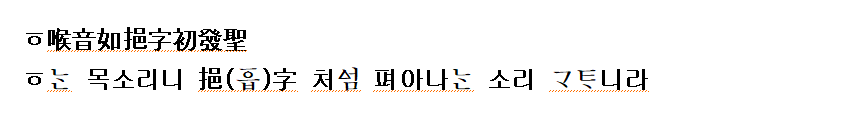 ㅋ 엄쏘리니 快ㆆ字 처 펴아 나 소리 니라