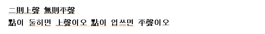 點이 둘히면 上聲이오 點이 업쓰면 平聲이오