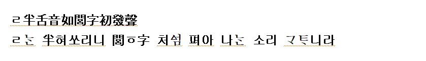 (강신항:1974 역) ㄴ는 혓소리니 ‘낭’자의 처음 나는 소리와 같다.