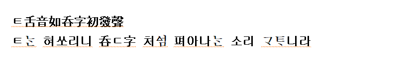 (조규태:2007 역) ‘ㅌ’은 혓소리이니, ‘’자 첫소리와 같다.