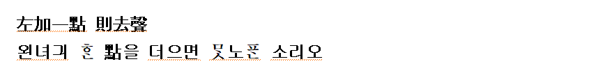 (강신항:1974 역) 왼쪽에 한 점을 더하면 거성이요,