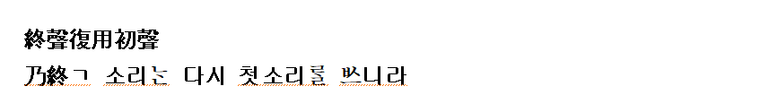 (강신항:1974 역) 종성에는 다시 초성(글자)를 쓴다.