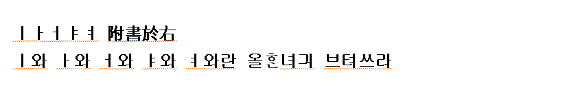 (강신항:1974 역) ㅣㅏㅓㅑㅕ는 오른쪽에 붙여 쓰라.