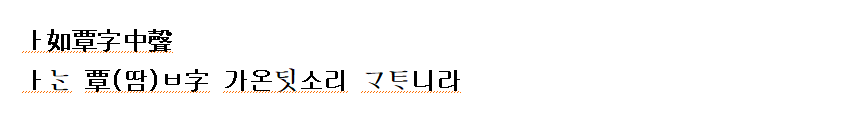 (강신항:1974 역) ㅓ는 ‘’자의 가운데 소리와 같다.