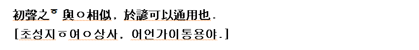 (강신항:1974 역) 초·중·종· 세 소리가 합하여 글자(음절)을 이룬다.